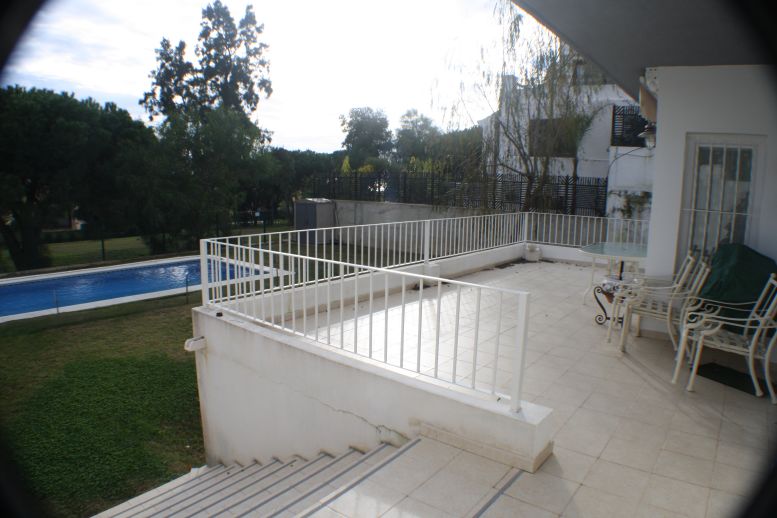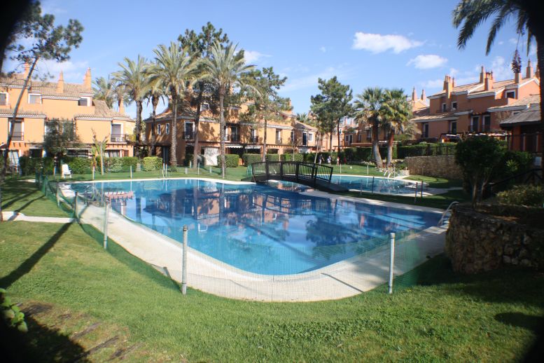 Magnífico adosado en la cornisa del campo de golf, muy cerca del club de golf . Tiene tres dormitorios, dos baños y aseo, salón comedor, cocina, terraza con jardín privado y vistas a la piscina , lavadero , solarium y plaza de aparcamiento. El residencial se compone de jardines y piscina. Está muy cerca de la playa.